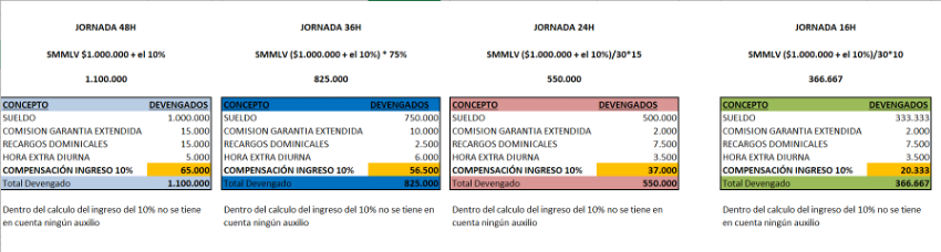 Ejemplo con SMMLV del año 2022 proporcional a la jornada.