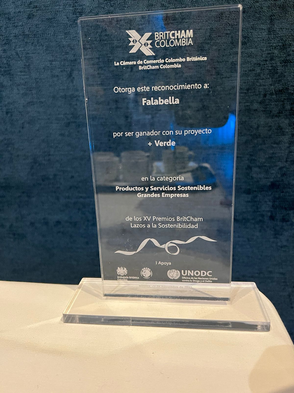 En la más reciente edición de los Premios BritCham “Lazos por la Sostenibilidad”, la Cámara de Comercio Colombo Británica reconoció nuestro proyecto de economía circular enmarcado en nuestra estrategia +Verde; otorgándonos así el premio en la categoría “Productos y Servicios Sostenibles Grandes Empresas”.